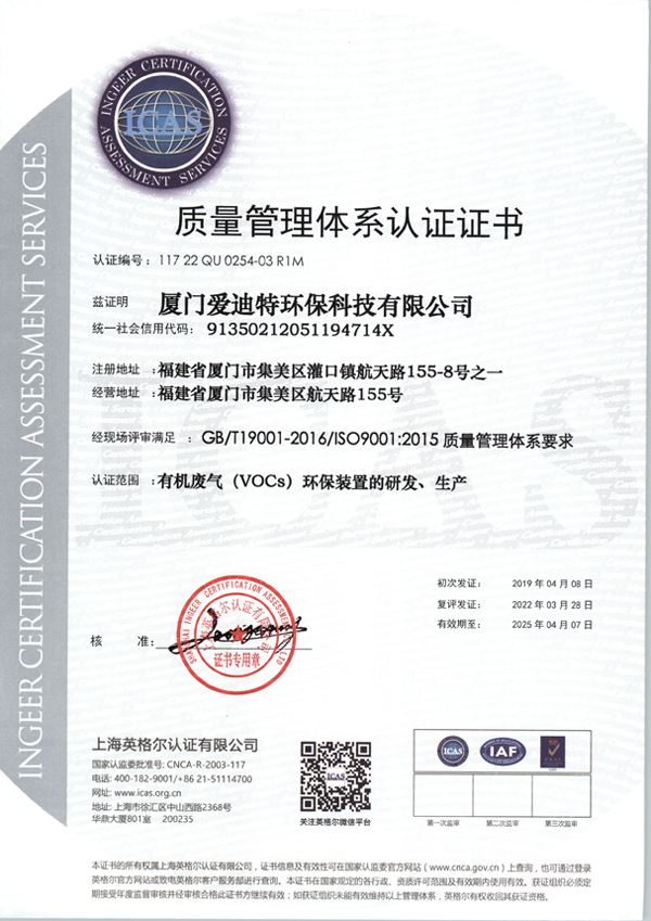 獲得質量管理體系要求認證證書